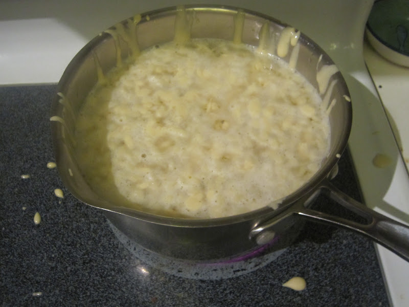 Once the water is very hot (doesn't have to be boiling or even simmering), strain the dough through the colander into the water.